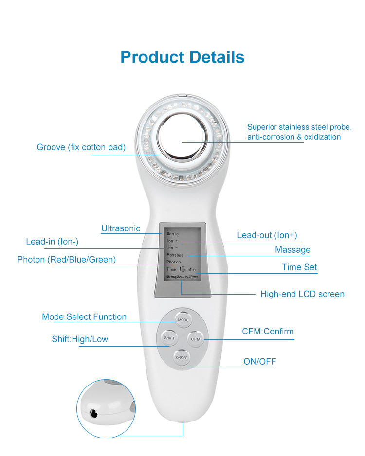 Ultrasound infiltrates the dermis and promotes recovery of elasticity and collagen, it tones facial muscles, increases blood circulation, encourages lymphatic drainage, combats puffiness and swelling and improves skin care product penetration.